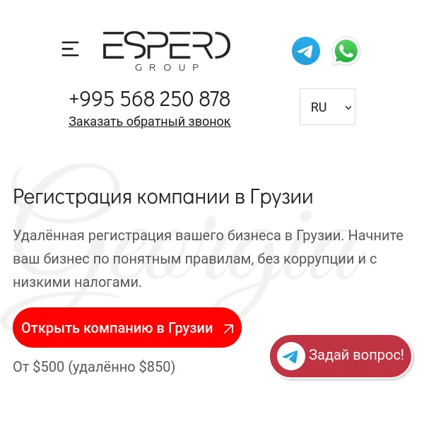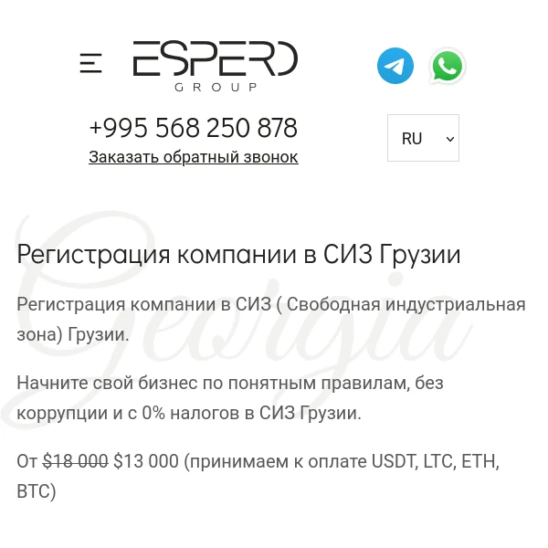 Я благодарен Эсперо за их профессионализм и отличное обслуживание. Рекомендую всем, кто нуждается в помощи с оформлением ШПС в Грузии, обратиться именно в эту компанию. Они точно знают, как помочь вам достичь ваших целей. Спасибо большое!